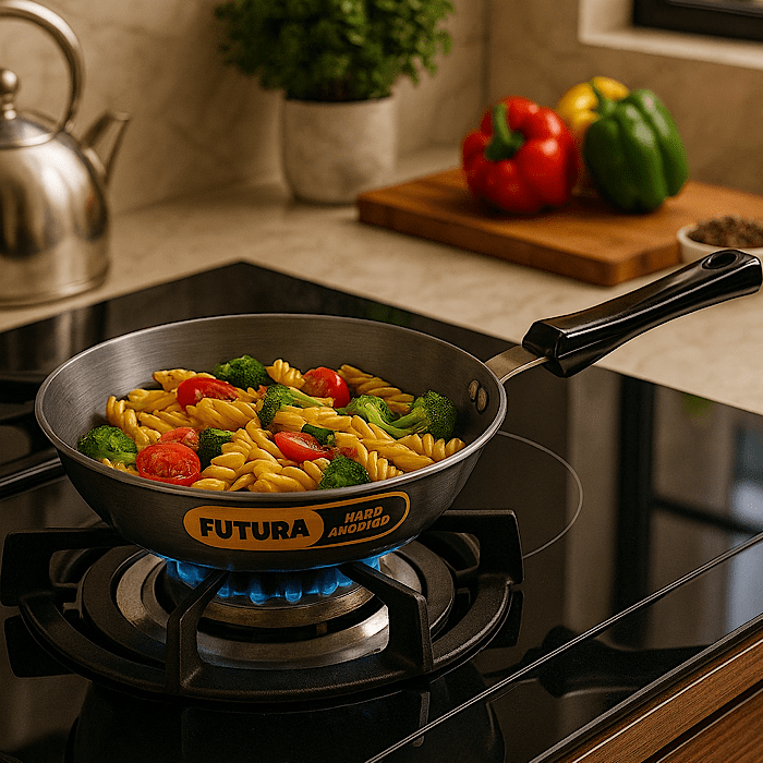 - پخش حرارت یکنواخت – چون فلز اصلی آلومینیومه ولی سطحش مقاومتر شده، گرما رو سریع و یکنواخت پخش میکنه.