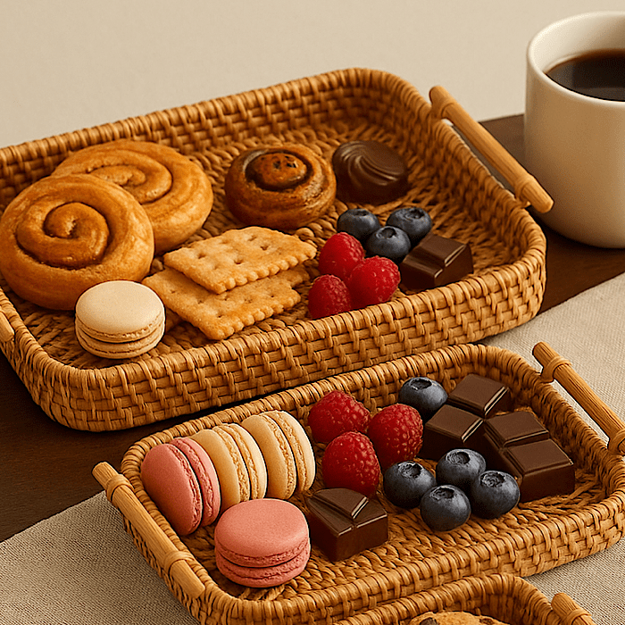 🌞 ظاهر طبیعی و گرمی داره، اون بافت طلایی-قهوهای که توی عکس سبدها دیدی دقیقاً امضای راتانه.